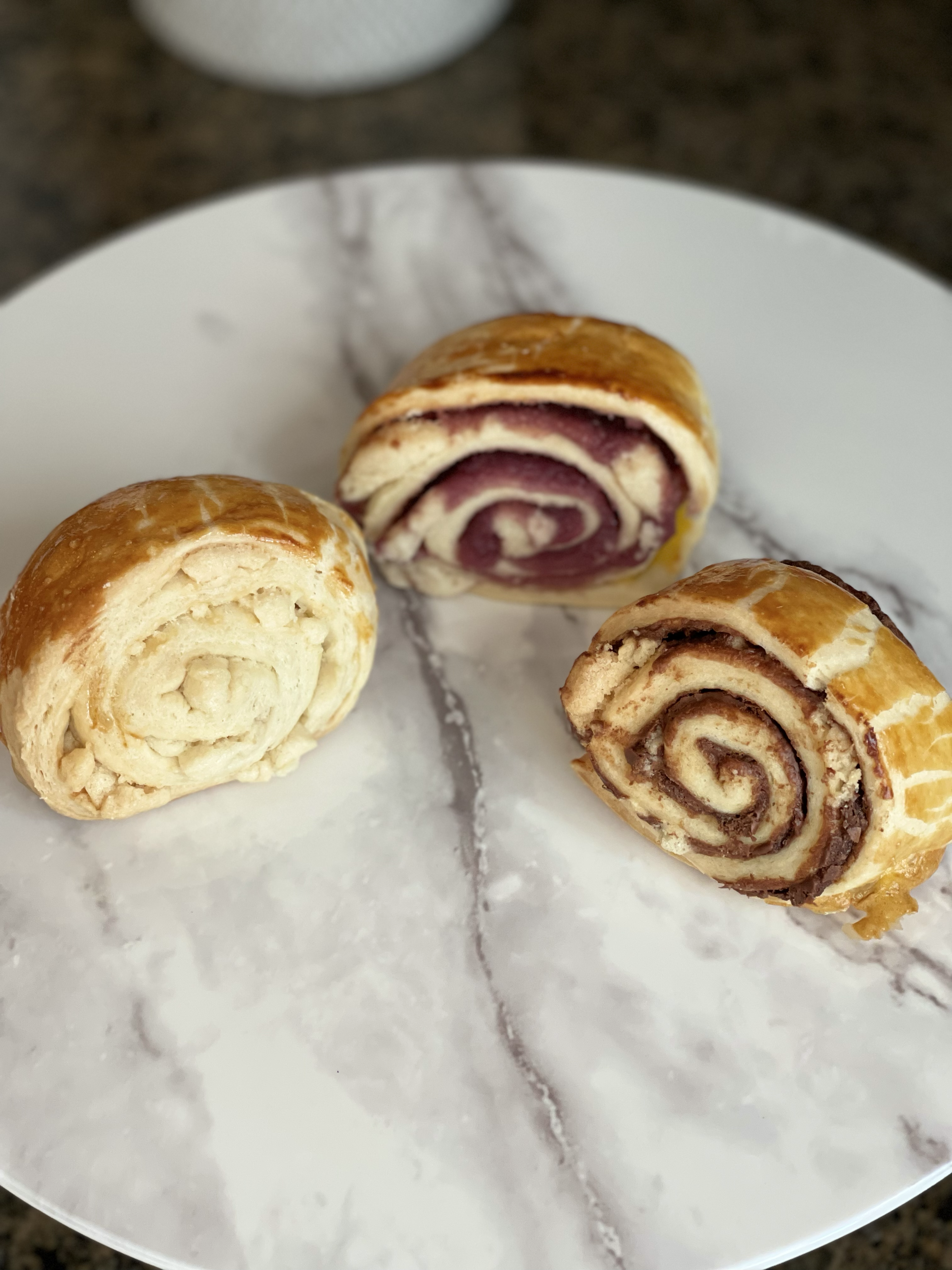 Soft, buttery and lightly sweetened pastry filled with your choice of vanilla, Nutella or ube.
